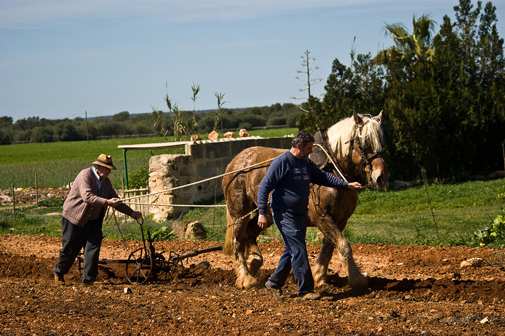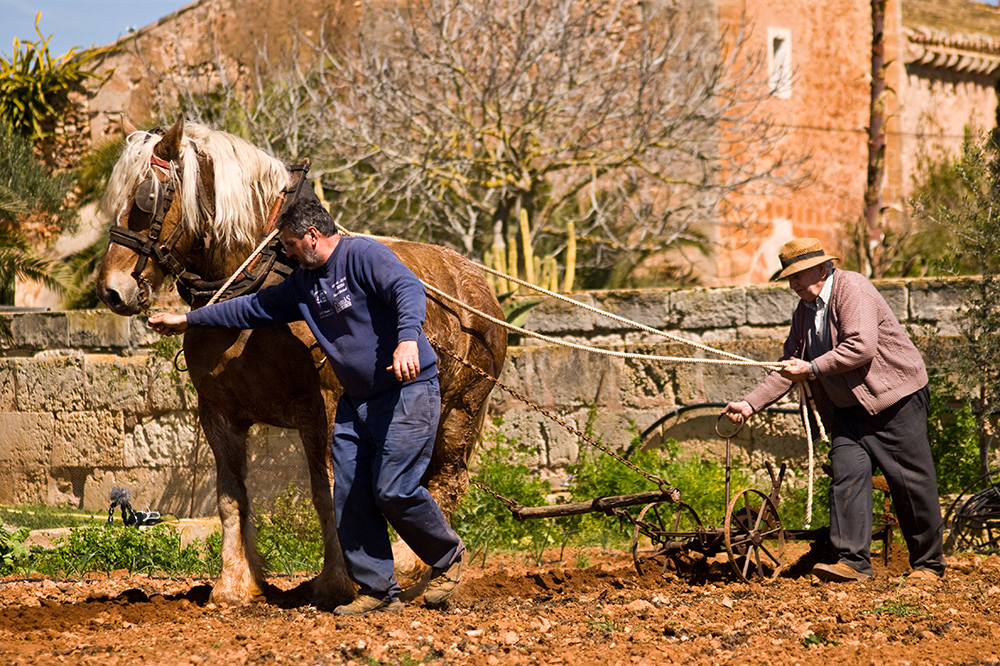 Früher benutzte man die Kraft der Tiere für die Bearbeitung der Böden – erst Ochsen, dann Esel und Maultiere, dann das Percherón Pferd. Schliesslich übernahmen die Traktoren diese Arbeit, auch sie steigerten sich durch neue Werkzeuge und Geräte.